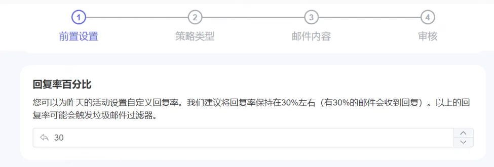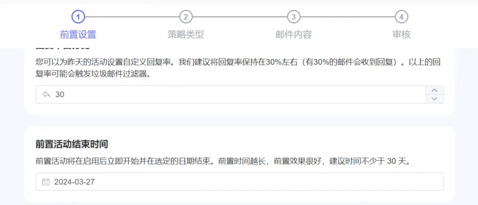 步骤1 设置您的预热活动邮件的回复率和活动截止日期