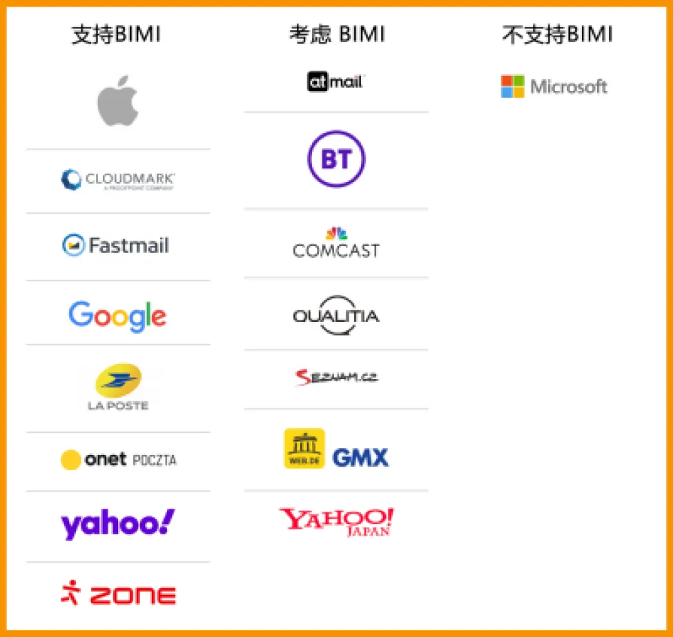 目前全球已经有很多主流邮箱支持BIMI规范。
