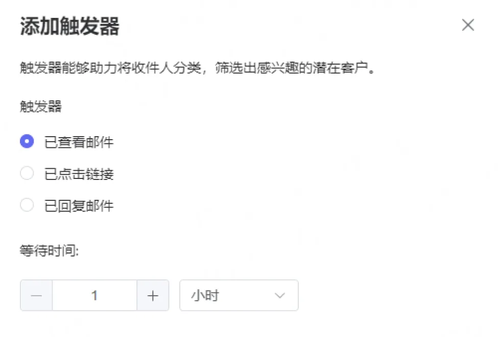 我们可以为不同的营销流程创建配置适合自己策略的触发器。比如说,设置当收件人点击了前一封邮件里的链接后,就自动触发后续相关产品推荐的邮件发送;通过巧妙的设置,就能让邮件发送变得更加自动化。