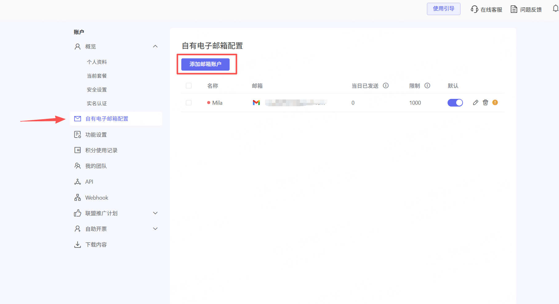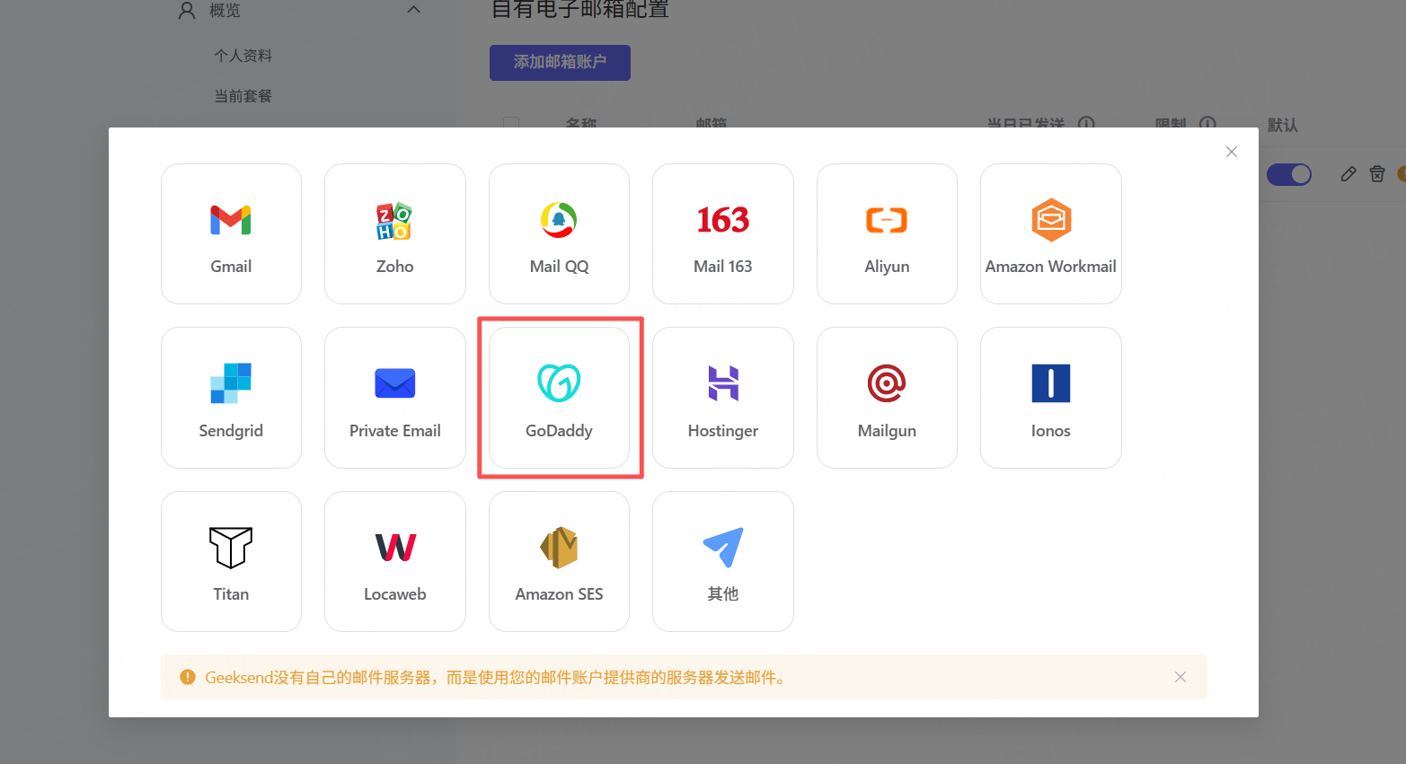 二、在 Geeksend 配置一个新的电子邮箱帐户