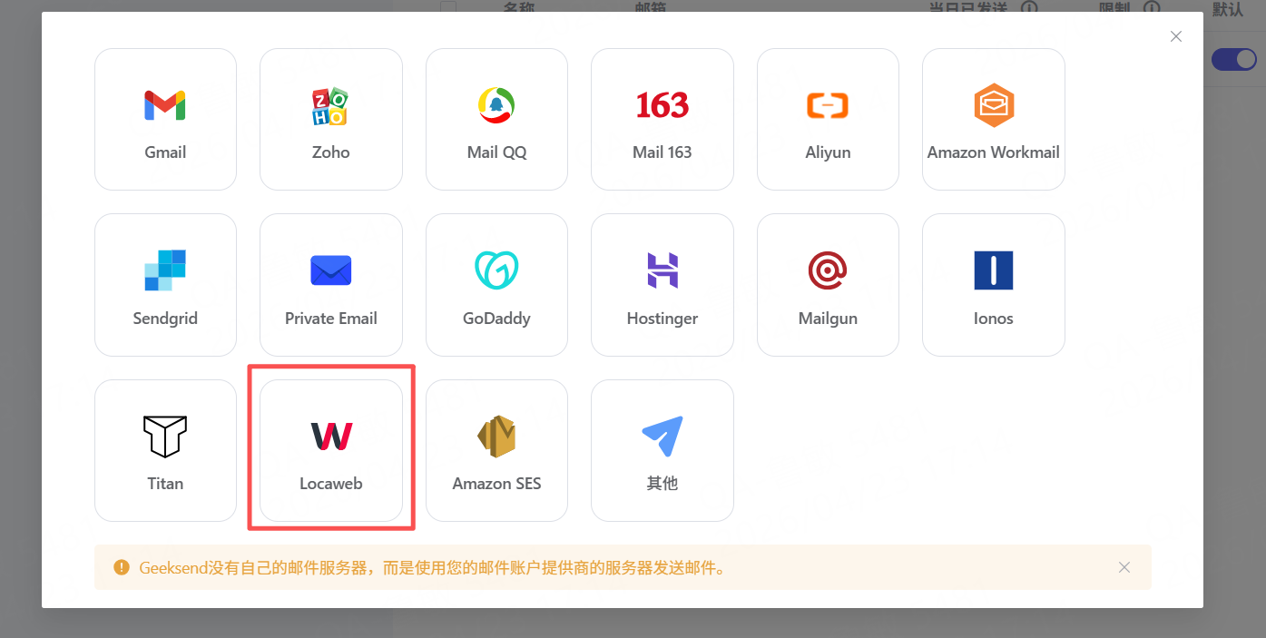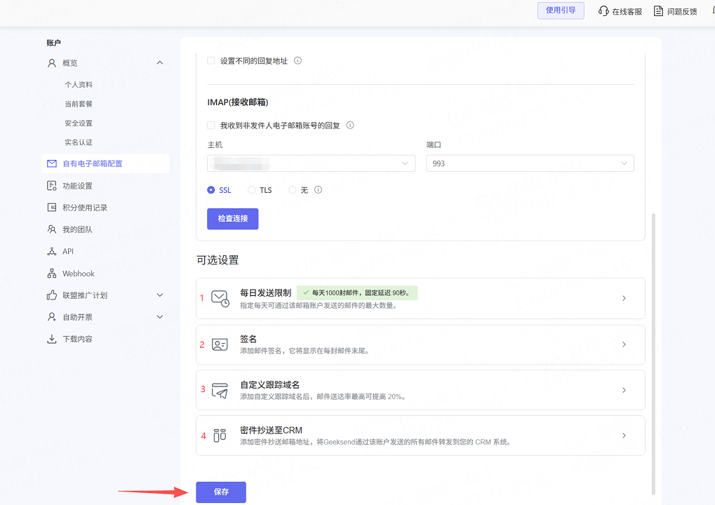 二、在 Geeksend 中配置新电子邮箱帐户